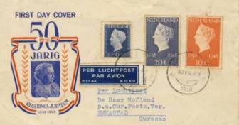 The oldest First Day Cover in my collection is one commemorating the Dutch queen, Juliana's 50th birthday issued in 1948 |