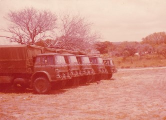 December 1975 I again received a call up for my 1st 19 day camp which was to be near Kozi Bay in the Jozini area. Here our unit was to build a extra wide and long hard surfaced airstrip to handle large aircraft and also a drift through a little river to take the weight of a low bed laden with a tank. This work was to be prepared from a possible threat from Mozambique. I was put in charge of the vehicle park soon earning my first stripe I was now a lance corporal. One 19 day camp down and 2 to go or so I thought. |