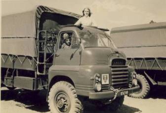 My sister Ineke is standing in the turret of my bubble nose Bedford I obtained my military licence and while still in Bethlehem I borrowed a Bedford and passed my civilian heavy duty licence at the local testing centre which would come in very handy when I arrived in England in 2005. |