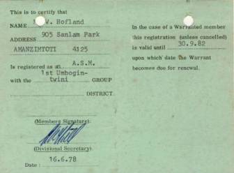 After moving to Athlone Park from Isipingo Beach I joined the 1st Umbogintwini cup pack. My first Akela was Roy Cowgill the son of the Near South Coast District Commissioner Fred Cowgill also known as Haiti. Just behind the hall was a huge tree known as BP tree and 'grand howl' would take place in the shade of this tree. I worked hard and soon promoted to a sixer. | |