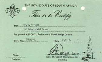 Adult training was then started by going on a preliminary wood badge course which was completed in May 1978 | |